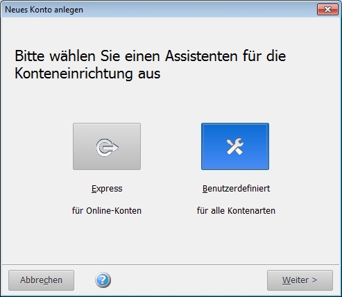 Beim Klick auf Weiter sehen Sie alle verfügbaren Kontoarten zur Auswahl.