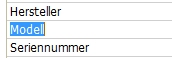 Zusätzlich können die drei Felder Hersteller, Modell, Seriennummer umbenannt werden und für diese Datei mit einer anderen Feldbezeichnung versehen werden.