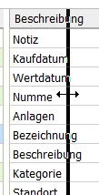 Die Spaltenbreite der beiden Felder Beschreibung und Wert können gegeneinander verändert werden.