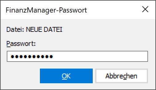 Von nun an werden Sie vor dem Öffnen dieser FinanzManager-Datei aufgefordert, das Passwort einzugeben.