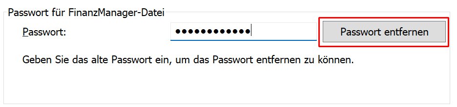 Wenn Sie eine komplette FinanzManager-Datei schützen möchten, verwenden Sie ein Passwort für eine Datei.