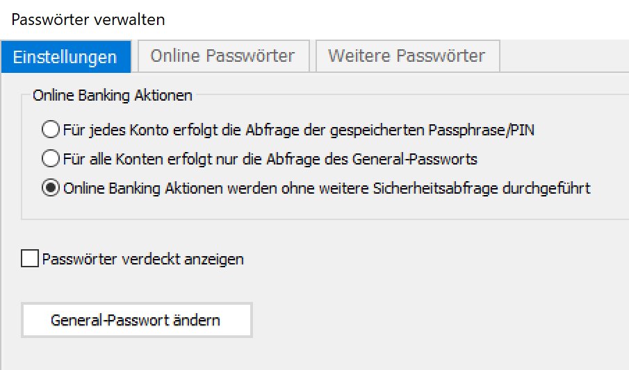 Für alle Konten erfolgt nur die Abfrage des General-Passworts