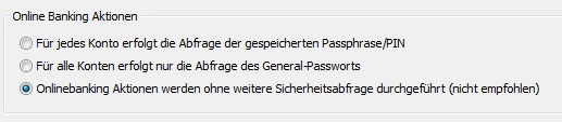 Onlinebanking Aktionen werden ohne weitere Sicherheitsabfrage durchgeführt (nicht empfohlen)