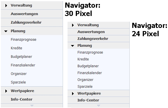 Legen Sie fest welche Höhe die einzelnen Einträge in der Navigationsleiste haben sollen.