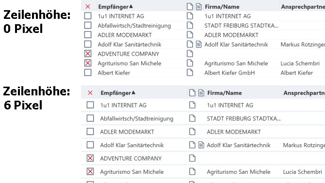 Legen Sie die Zeilenhöhe in Listen wie regelmäßige Buchungen, Bankverbindungen oder Buchungsvorlagen fest.