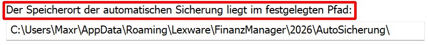 Der Speicherort der automatischen Sicherung liegt im festgelegten Pfad: