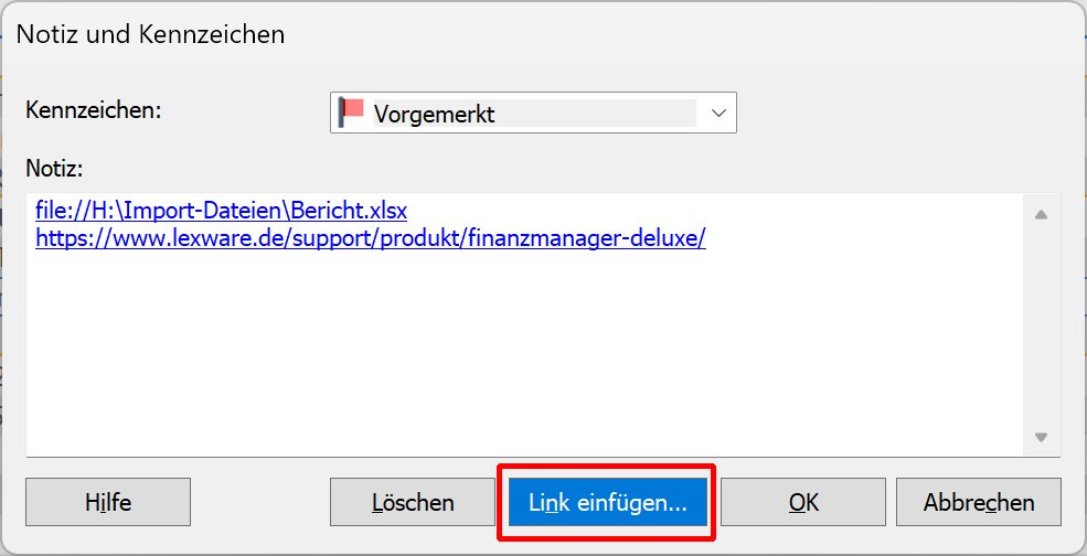 Bei einer Notiz ist es möglich einen Link zu einer Webseite oder einer Datei einzufügen.