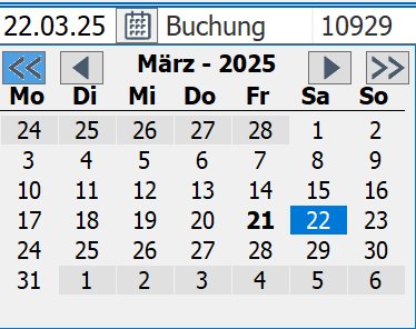 Bei der Auswahl von Datumsangaben über den Kalender werden zusätzlich zu den angezeigten Kalendertagen des aktuellen Monats auch die Datumsangaben des vorangehenden und nachfolgenden Monats sichtbar und auswählbar.