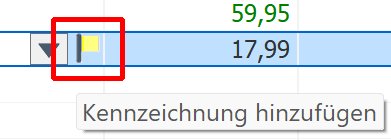 Ein Klick auf die Fahne öffnet ein Menü, über das die Kennzeichnung vorgenommen wird.