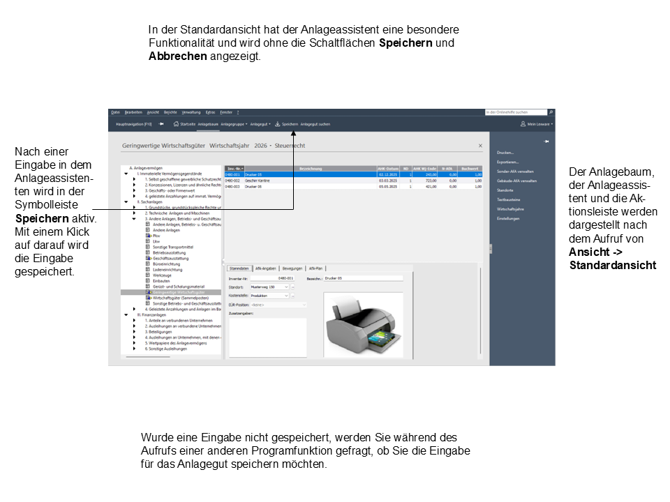 Anlagegüter, Buchungsdaten und Berichte exportieren